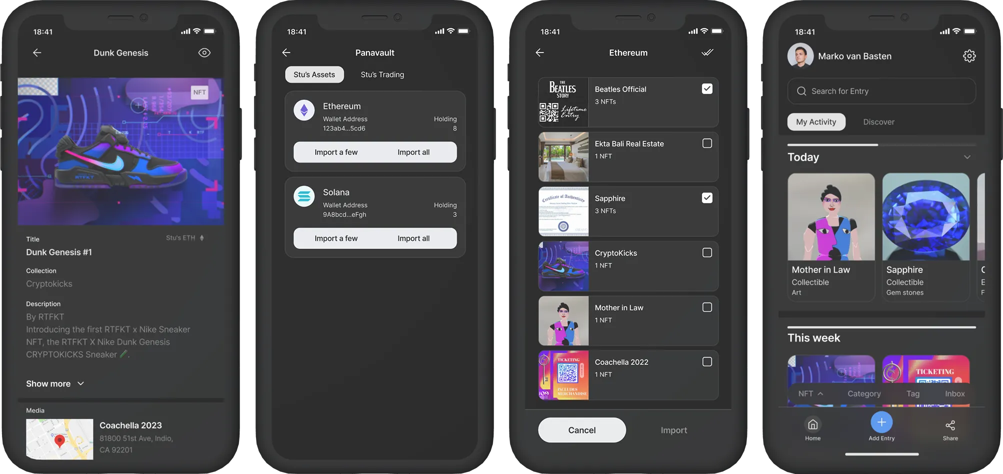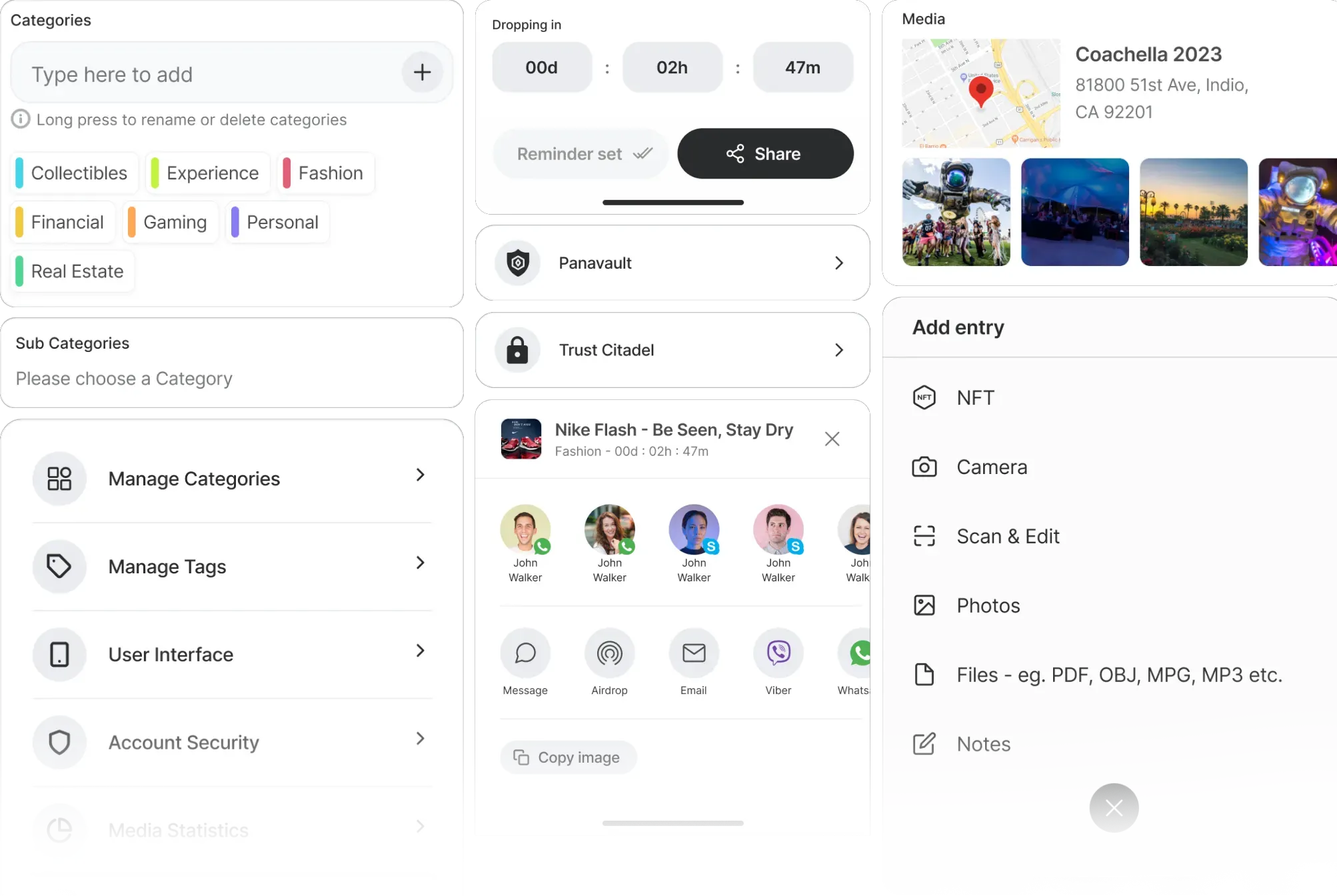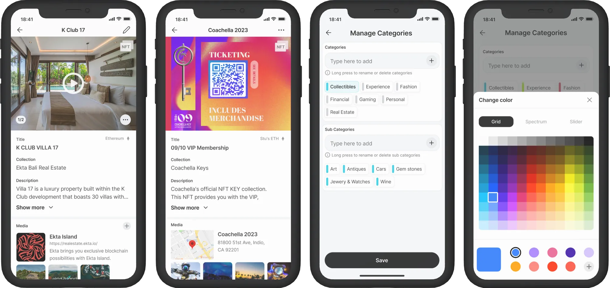 The result was a clean, intuitive mobile interface centered around essential actions like uploading documents, managing categories, and importing NFTs. Every flow was streamlined to minimize friction. Users gained the ability to tag and categorize their files effortlessly, making organization and retrieval faster. NFT importing was designed to be seamless, connecting to popular platforms such as Opensea without unnecessary steps. For brands, the app opened new territory. They could showcase NFTs, publish curated collections, and engage users directly inside the experience. This added dimension turned the app into more than a tool - it became a platform for interactive, branded content.